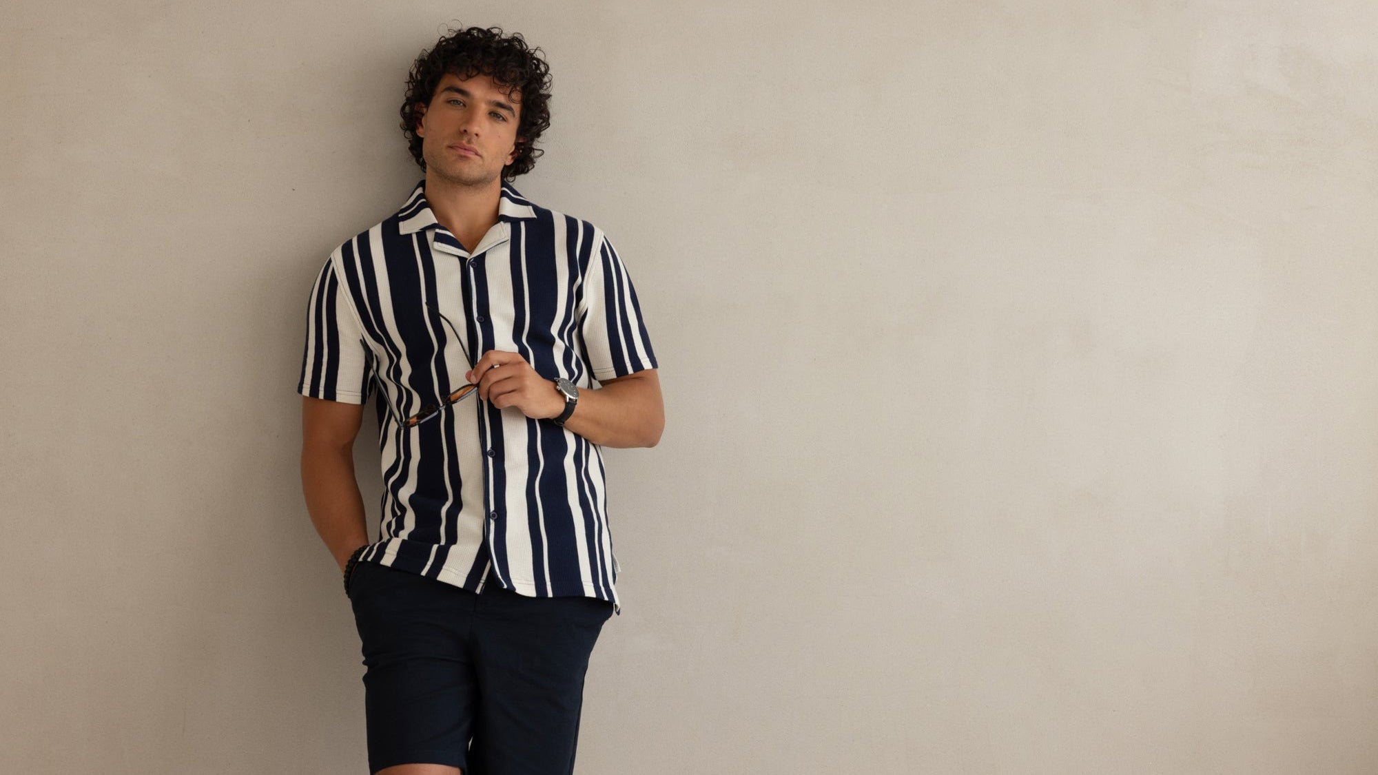 Somero - Navy & Brown Stitch Detail Woven ...
