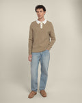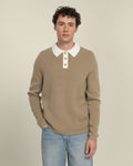Ecru Khaki Aarhus - Textured Long Sleeve Polo Shirt